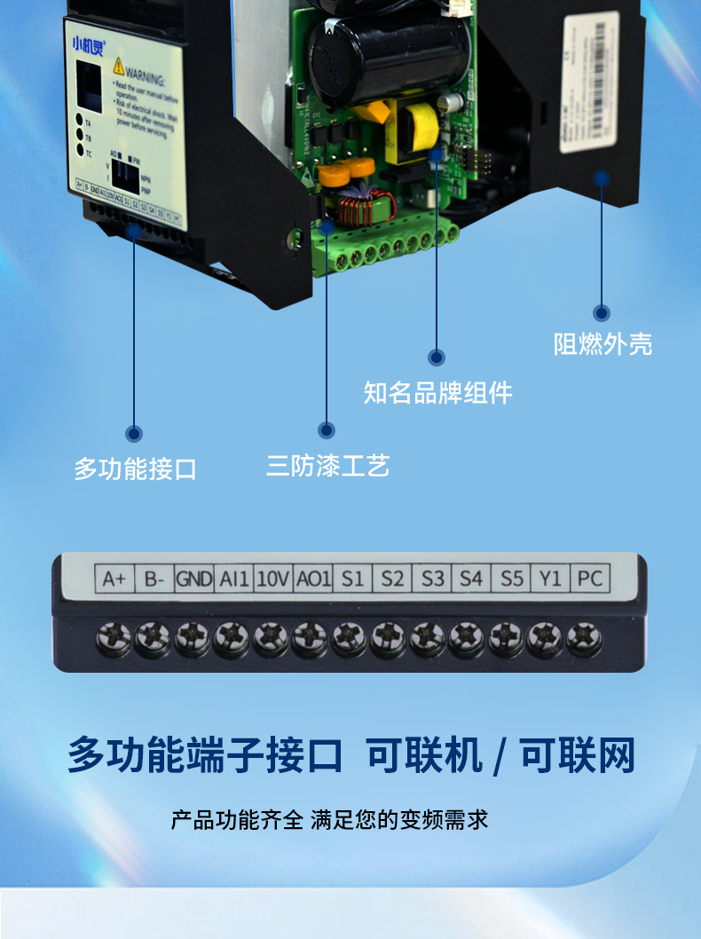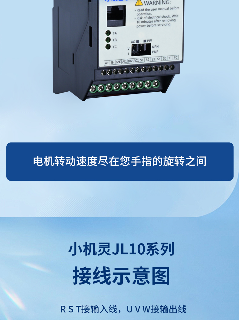 JL10變頻器新品上市,處處是升級,產(chǎn)品身材更小,正面觀看和一部普通智能手機(jī)的大小相似。產(chǎn)品雖小,功能齊全。多功能端子接口可聯(lián)機(jī)/可聯(lián)網(wǎng),產(chǎn)品外殼采用阻燃材料,耐高溫。