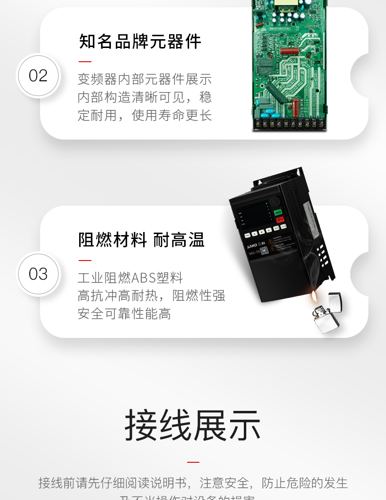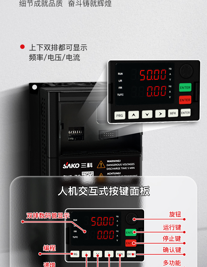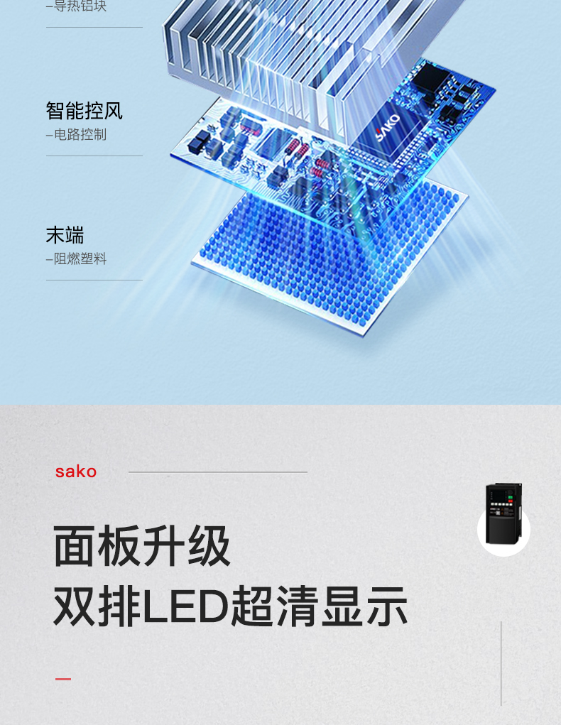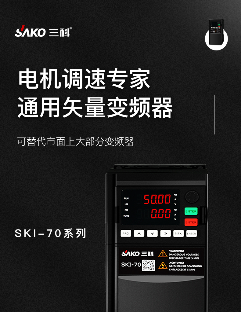 SKII70變頻器新品上市,處處是升級,產(chǎn)品身材更小,功能更強性能穩(wěn)定,雙排LED顯示更直觀,獨立風道設計產(chǎn)品性能更穩(wěn)定??赏饨用姘?,實現(xiàn)遠程控制,產(chǎn)品外殼采用阻燃材料,耐高溫。