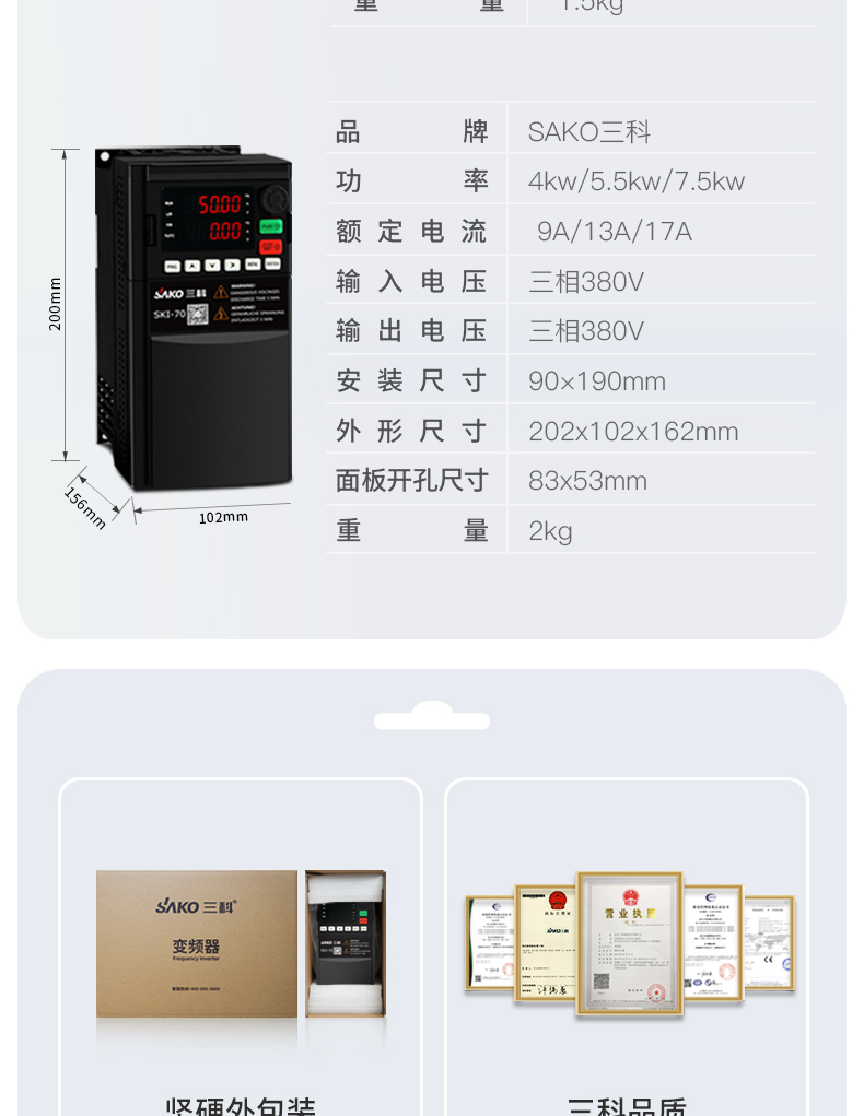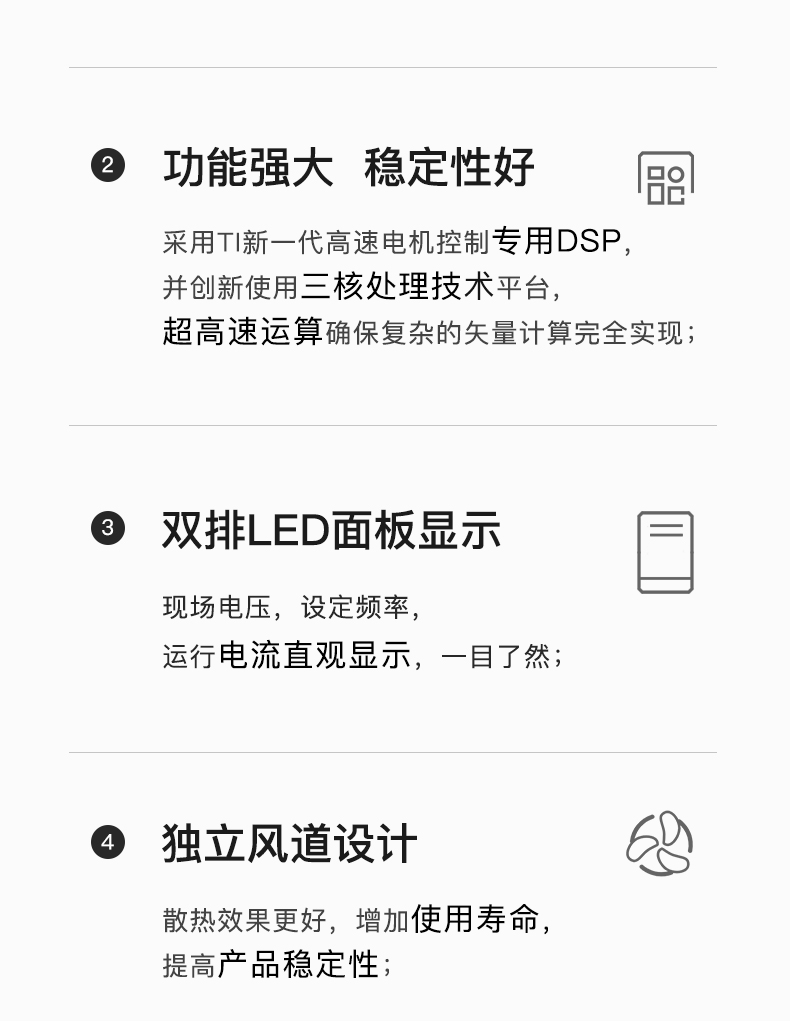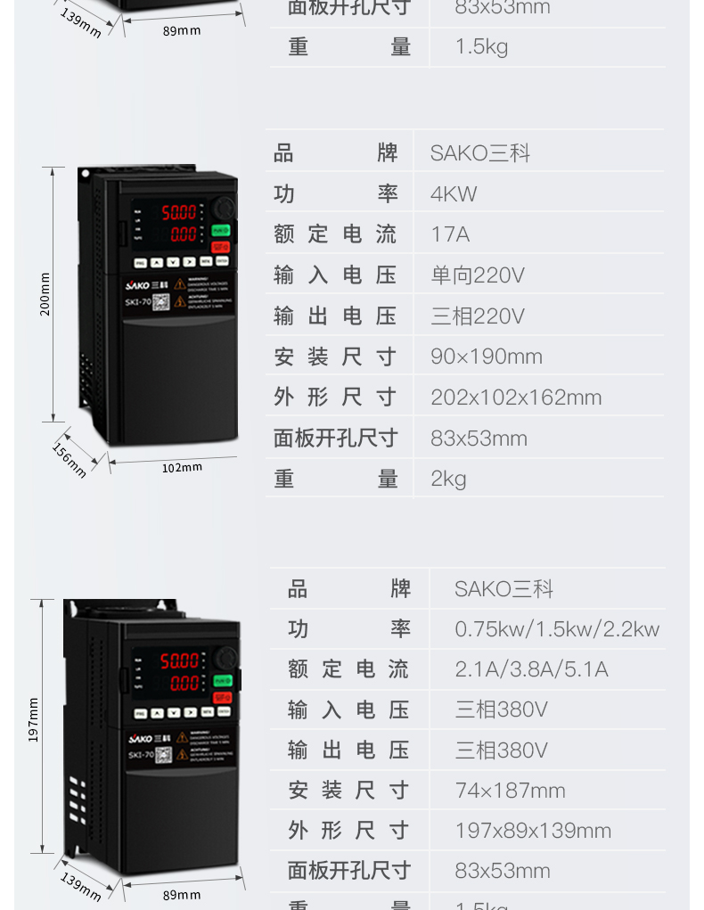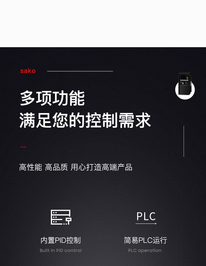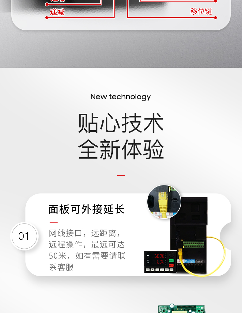 SKII70變頻器新品上市,處處是升級,產(chǎn)品身材更小,功能更強性能穩(wěn)定,雙排LED顯示更直觀,獨立風道設計產(chǎn)品性能更穩(wěn)定??赏饨用姘?,實現(xiàn)遠程控制,產(chǎn)品外殼采用阻燃材料,耐高溫。