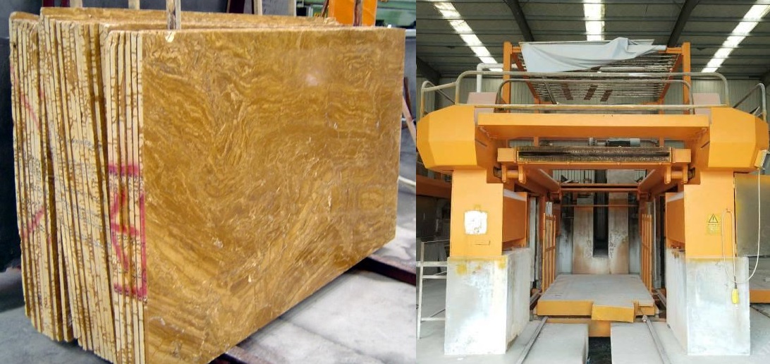 選用大型飛輪的大理石排鋸,既能夠提高運(yùn)行平穩(wěn)性,還能夠有效的儲存能量,最終達(dá)到節(jié)省電耗,達(dá)到節(jié)省成本效果目標(biāo)。整機(jī)切割方式,主電機(jī)驅(qū)動飛輪,帶動鋸框做直線往復(fù)運(yùn)動;裝載荒料的荒料車通過升降臺的提升實(shí)現(xiàn)荒料頂升式鋸切。加工荒料時,鋸框保持往返運(yùn)動,裝載荒料的荒料車沿著有導(dǎo)向機(jī)構(gòu)上升,可大幅提高切割效果。