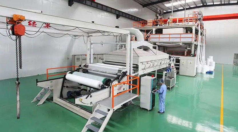 首先將無紡布的原料高分子聚丙烯放入螺桿擠出機中加熱熔融,將熔融的聚丙烯輸送到過濾器中過濾雜質(zhì),然后將熔體通過計量泵定量輸送到噴絲板組件中。此時噴絲孔兩側的熱空氣會以接近音速的速度吹動流動的熔體,使其迅速變細,并在下落過程中被兩側的牽引空氣冷卻凝固成超細纖維,最后凝聚在一個輥筒上。通過自粘合成布,這樣生產(chǎn)出來的布不是用紗線織成網(wǎng),而是直接省略了加工成線的步驟,纖維粘合成布,所以稱為無紡布。在從噴絲板擠出熔體的過程中,主要的電機設備是單螺桿擠出機。