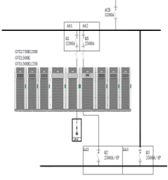 如圖示并機(jī)物理結(jié)構(gòu)2,為6臺(tái)250KW的功率柜+1500KW靜態(tài)旁路+輸入輸出I/O柜通過外部主配電柜和主電纜進(jìn)行并聯(lián),總共需要4個(gè)配電柜和少量電纜。每臺(tái)250KW UPS功率柜內(nèi)部集成了自動(dòng)控制的接觸器和熔斷器,內(nèi)部還集成和預(yù)制了主輸入、旁路輸入、主輸出和電池母線的銅排背板與I/O柜連接,每臺(tái)UPS功率柜不再需要外配四把分?jǐn)嗦菲骱退慕M分電纜。