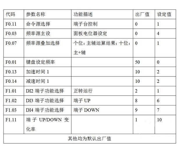 通過SKI800變頻器的頻率疊加功能和DOWN功能,實現(xiàn)了牽引電機在一個初始設定的頻率基礎上進行加減速微調,同時端子UP/DOWN變化率參數(shù)的設置很方便的對加減速靈敏度進行控制,現(xiàn)場使用效果很好。