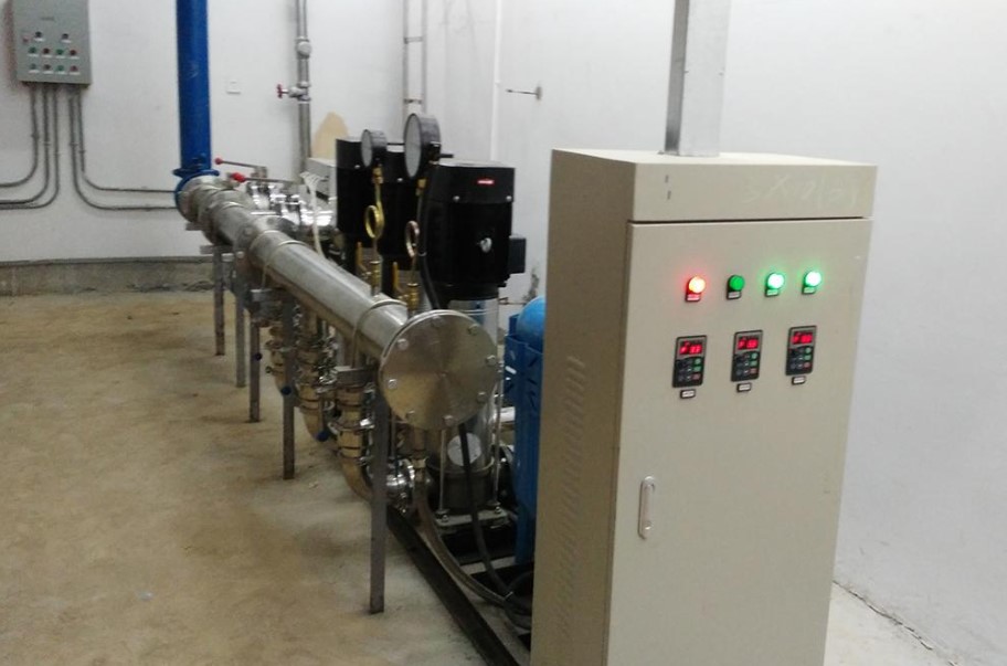 水泵VFD自動(dòng)控制系統(tǒng)工作時(shí),設(shè)備通過(guò)安裝在供水管網(wǎng)上的高靈敏度壓力傳感器來(lái)檢測(cè)供水管網(wǎng)在用水量變化時(shí)的壓力變化,不斷向VFD傳輸變化的信號(hào),經(jīng)過(guò)微電腦判斷運(yùn)算并與設(shè)定的壓力比較后,向控制器發(fā)出改變頻率的指令,控制器通過(guò)改變頻率來(lái)改變水泵電機(jī)的轉(zhuǎn)速與啟用臺(tái)數(shù),自動(dòng)調(diào)節(jié)峰谷用水量,保證供水管網(wǎng)壓力恒定,以滿足用戶(hù)用水的需求。