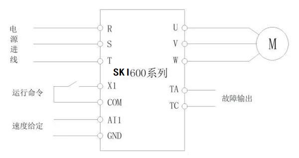 1、采用SKI600磁通矢量控制模式,根據(jù)電機(jī)銘牌設(shè)置電機(jī)參數(shù),旋轉(zhuǎn)自學(xué)習(xí)。