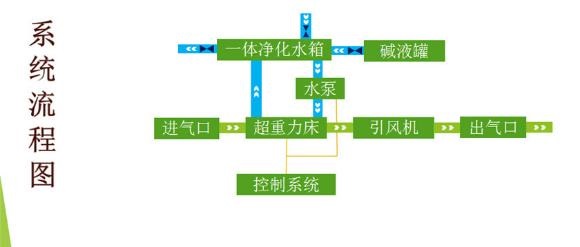 圖中:綠色箭頭代表廢氣走向,藍(lán)色箭頭代表水路線,細(xì)線代表控制線