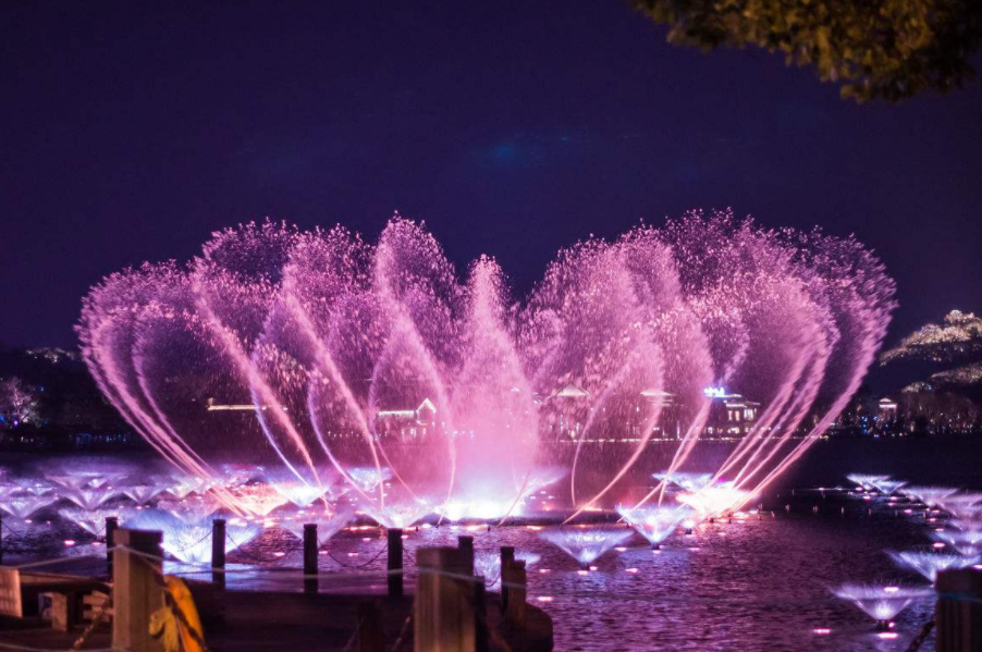 非常招攬游人的音樂噴泉,其水的高低和量的大小是靠變頻器矢量控制的。