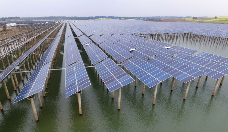 2.“漁光互補(bǔ)”是漁業(yè)文化與光伏發(fā)電的結(jié)合。魚(yú)塘水面上方設(shè)置光伏板陣列,光伏板下方水域可進(jìn)行魚(yú)蝦養(yǎng)殖。光伏陣列還能為養(yǎng)魚(yú)提供良好的屏蔽效果,形成“上發(fā)電、下養(yǎng)魚(yú)”的發(fā)電新模式,可實(shí)現(xiàn)養(yǎng)殖與發(fā)電并行,提高綜合產(chǎn)值。